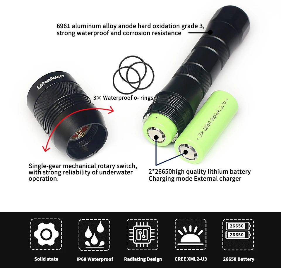 С механическим поворотным переключателем, обеспечивает высокую надежность под водой.