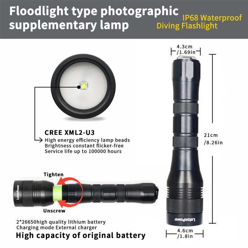 120 градусов широкий угол луча, подходит для подводной фотографии и дополнительного освещения.