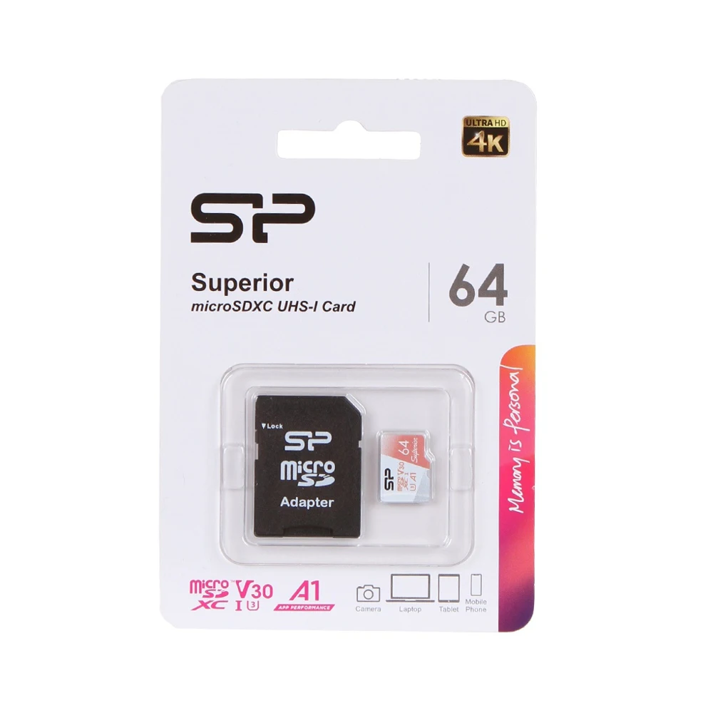 Карта памяти 64Gb - Silicon Power Superior A1 MicroSDXC Class 10 UHS-I U3 SP064GBSTXDV3V20SP с адаптером SD