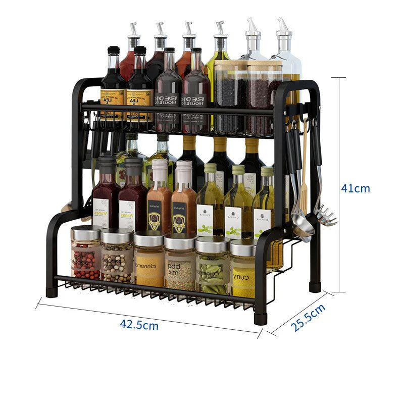 Прочная конструкция: органайзер для кухонной столешницы изготовлен из сверхпрочного стального материала с порошковым покрытием, прочный и легко чистится. Квадратные ножки стойки для приправ толстые и достаточно прочные, чтобы загружать до 35 фунтов