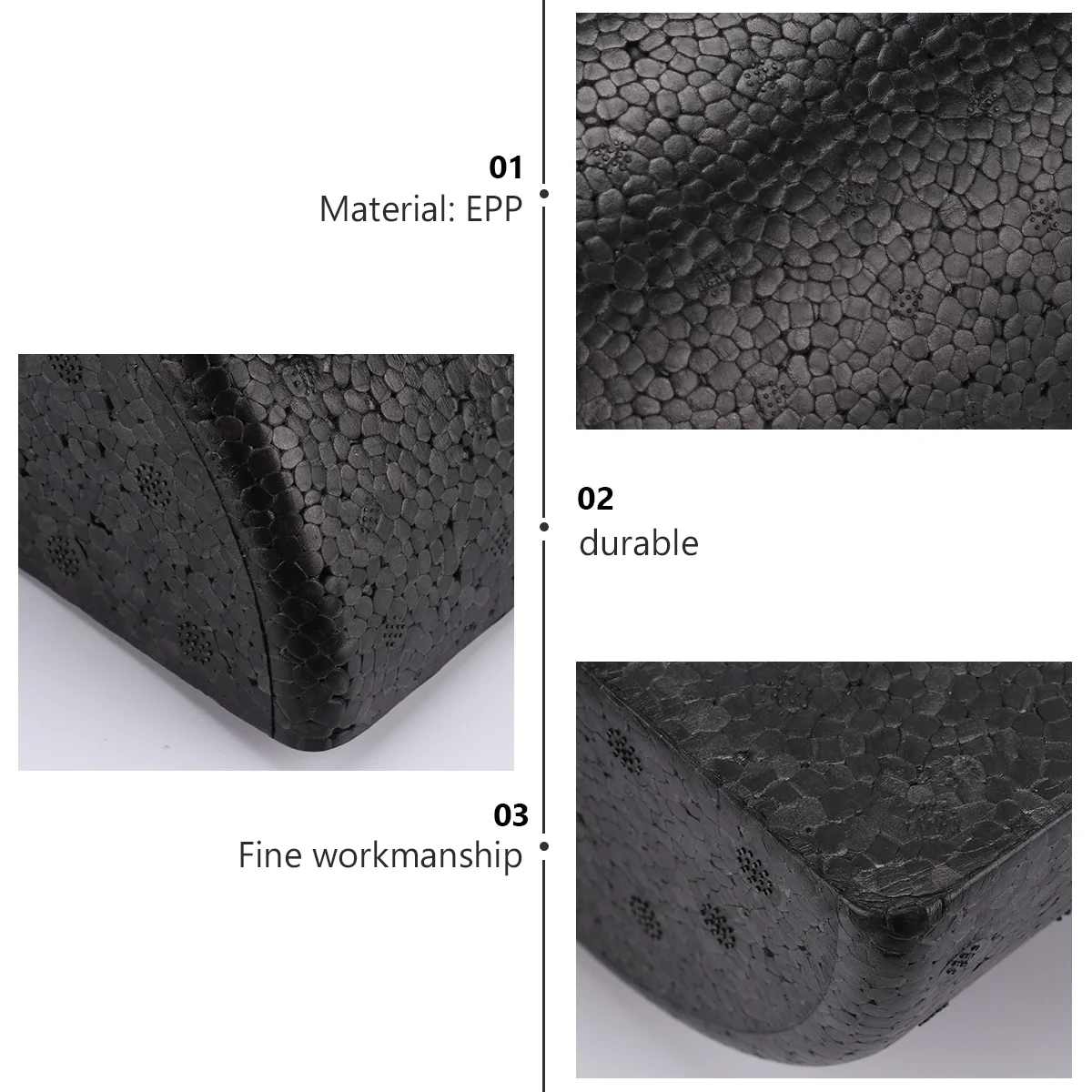 -Изготовлен из EPP, который отличается высокой плотностью и сопротивляется изгибу или разрыву под напряжением или весом, обеспечивая прочную, глубокую ткань, которая может быть использована для длительной терапии.