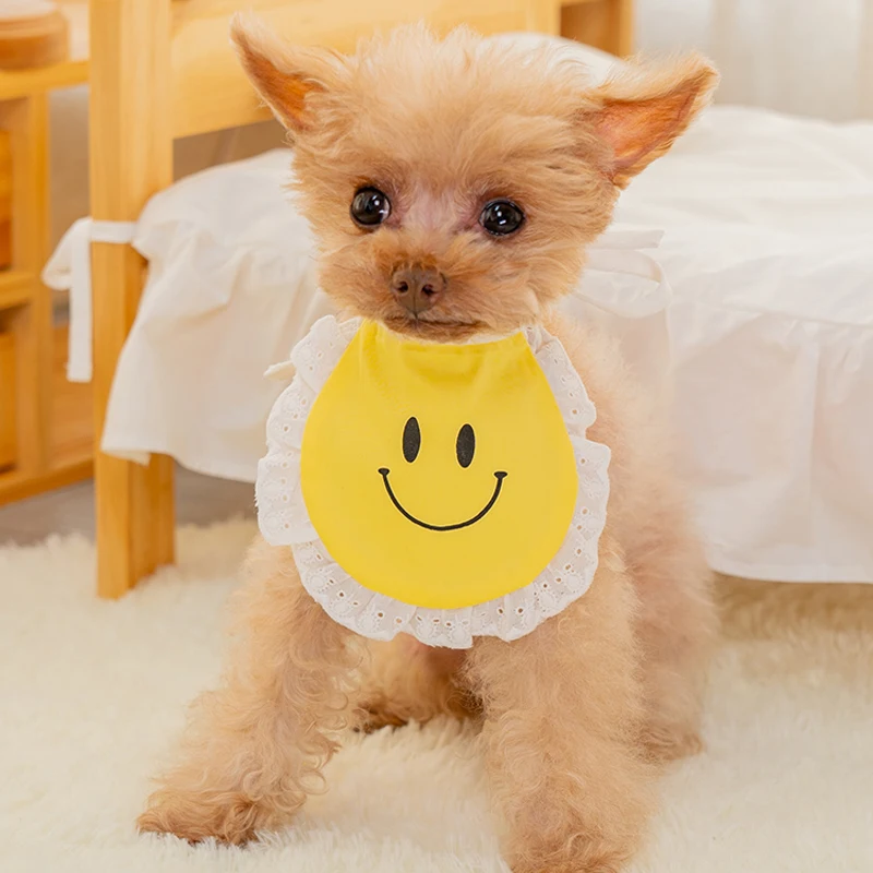 Улыбающееся лицо, собачий шарф, милый ошейник для кошки, нагрудники, плюшевый воротник, одежда для щенков, аксессуары, кошачий шарф, шейный шарф с цветами
