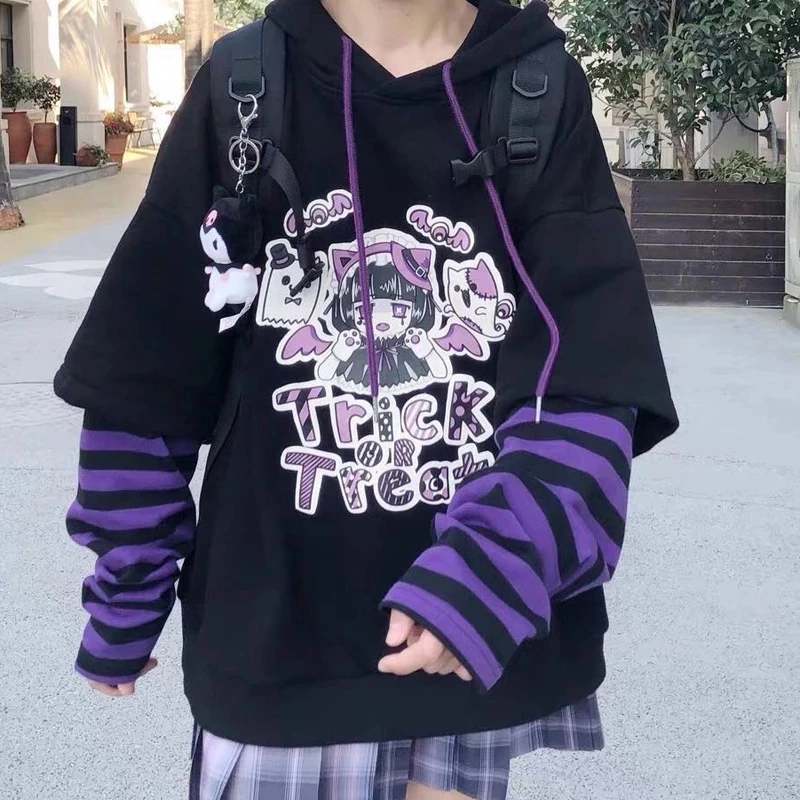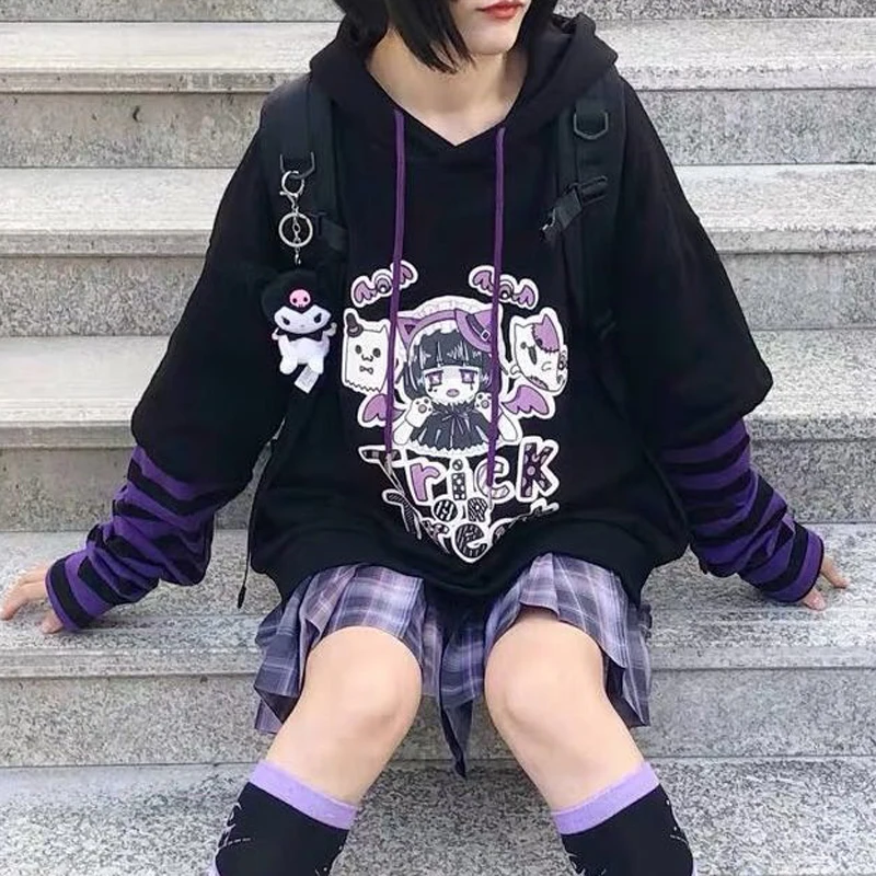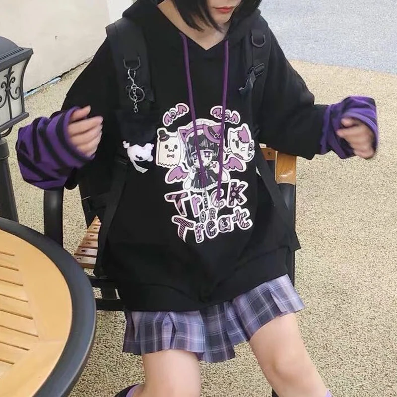 Отзывы о Осенние новые милые толстовки женские черные кавайные с мультяшным принтом Harajuku