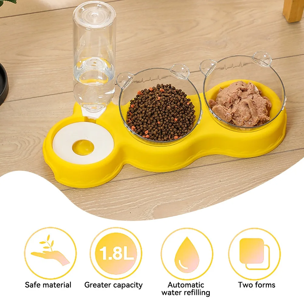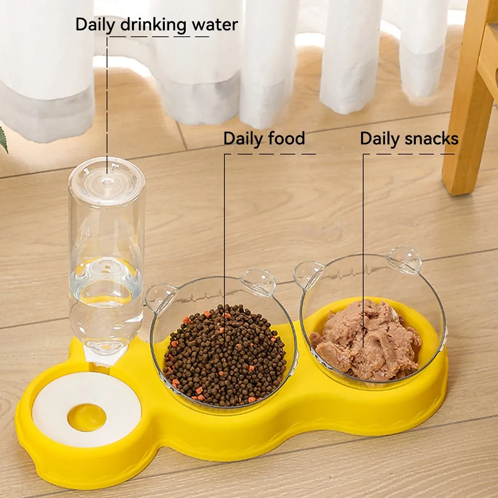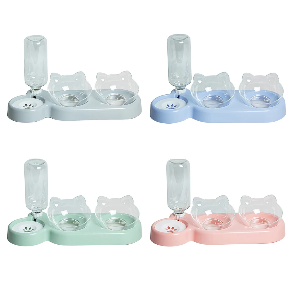 1. «Три в одном» кошачьего корма воды чаши набор: два кошачьи миски специально разработаны для отделение для сухого и мокрого, позволяя нескольких домашних животных к употреблению в одно и то же время |