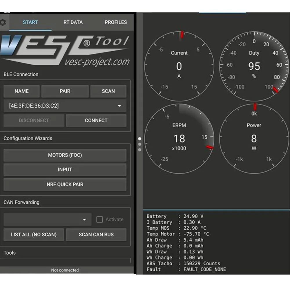 1. bluetooth разработан для связи между Maytech SuperESCs и VESC_TOOL через BLE, чтобы отобразить параметры на мобильный телефон, так что вы можете легко контролировать параметры реального времени в приложении.