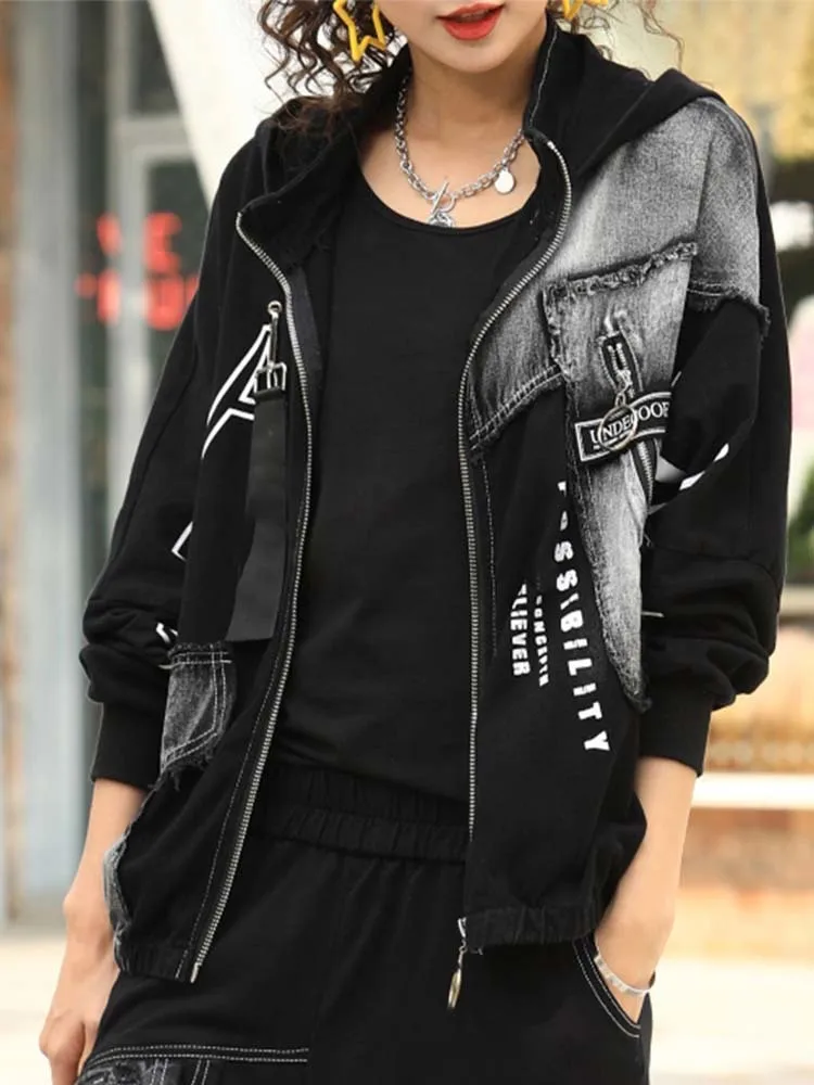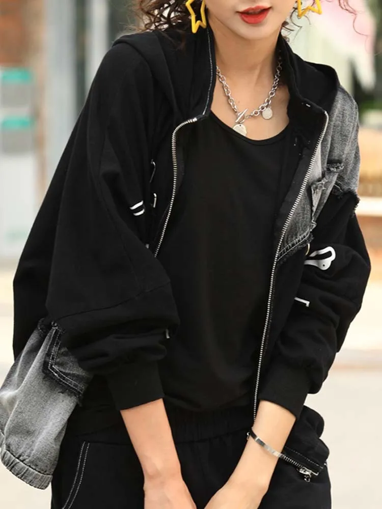 Джинсовое Свободное пальто с капюшоном