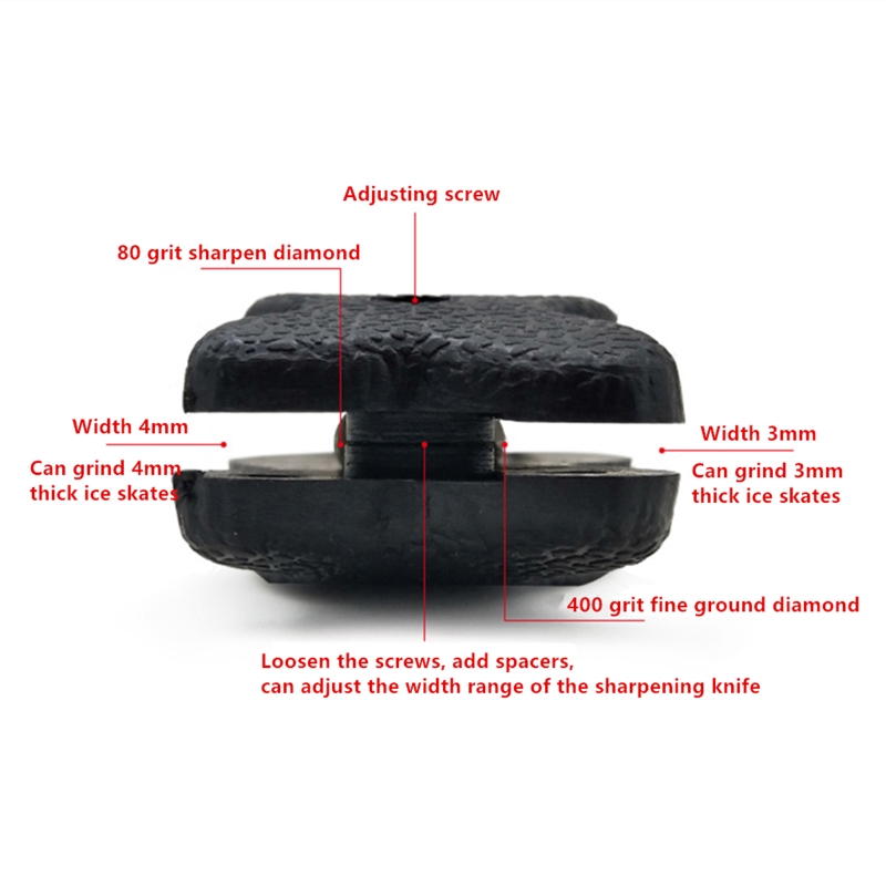 Ручная точилка для лезвий подходит для большинства ширины коньков и не влияет на полое лезвие или радиус.
