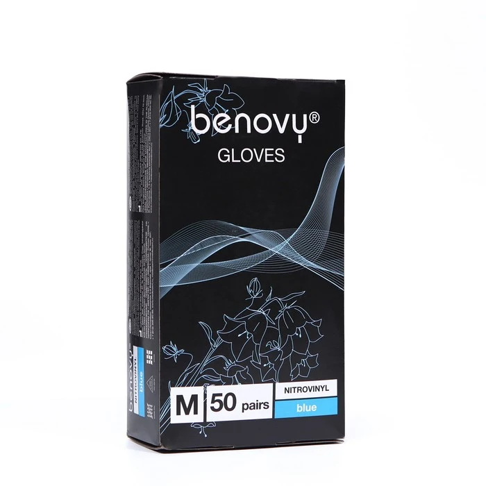 Перчатки нитровиниловые Benovy Nitrovinyl гладкие, голубые, M, 50 пар в упаковке 7523224