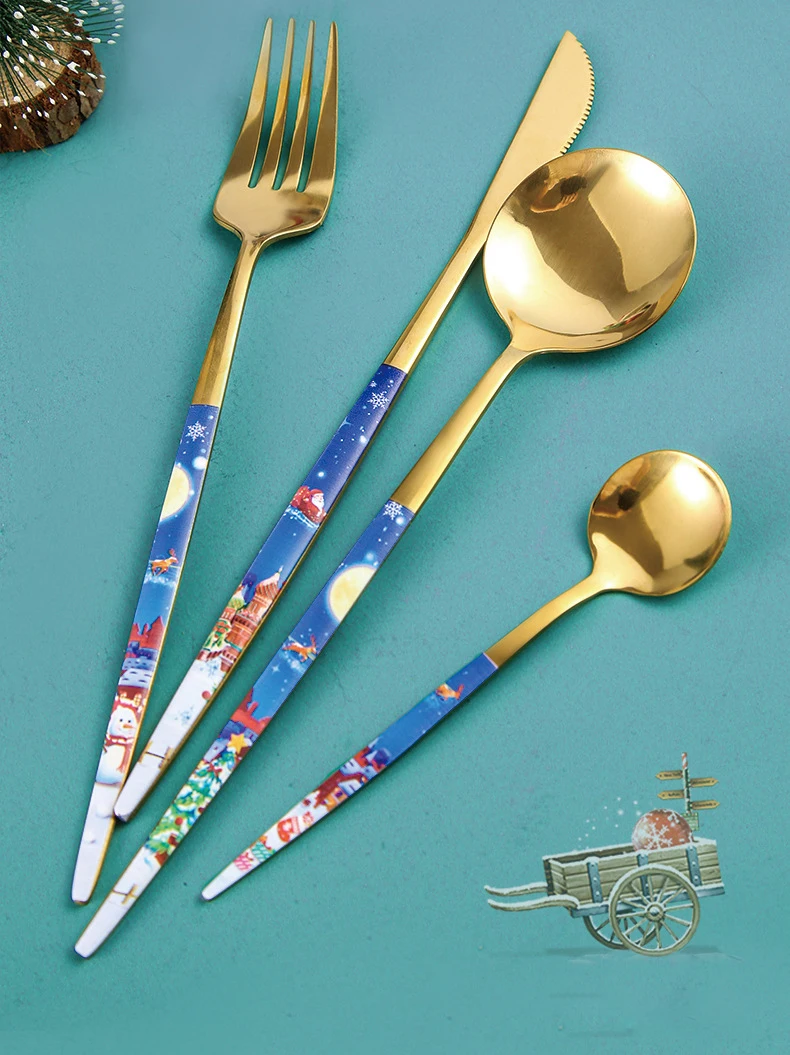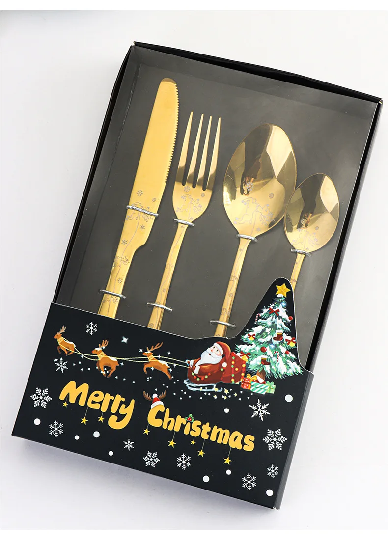 Новый Нержавеющая сталь западные столовые приборы Рождественский персонализированные ложка Western стейк столовые приборы Подарочный комплект из 4 предметов, комплект