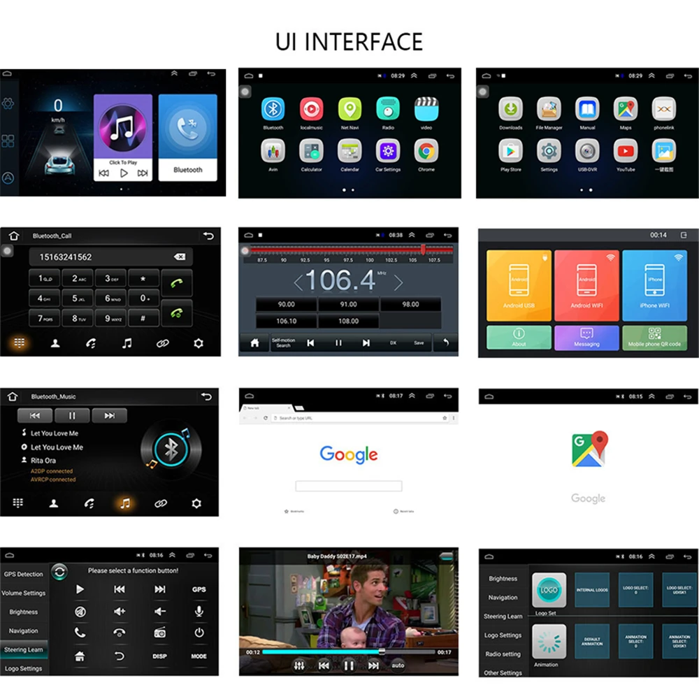 WiFi/загрузка приложений/3D навигация/радио тюнер/Bluetooth/Двойная зона/управление файлами/HD 1080P видео/Управление рулевым колесом/зеркальная Ссылка/OBD2/DVR/резервная камера/MP3/AUX/USB/и т. Д.