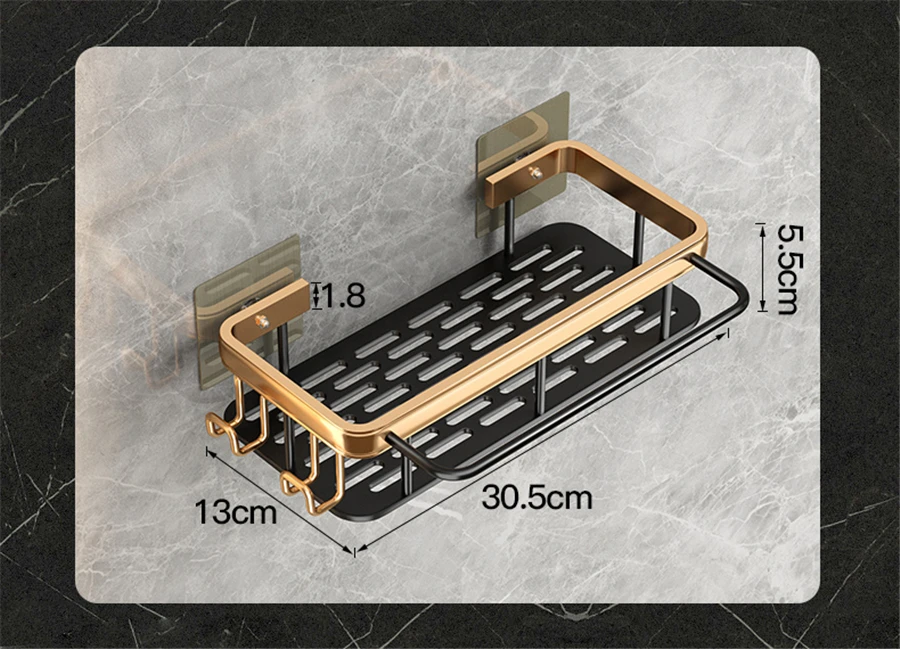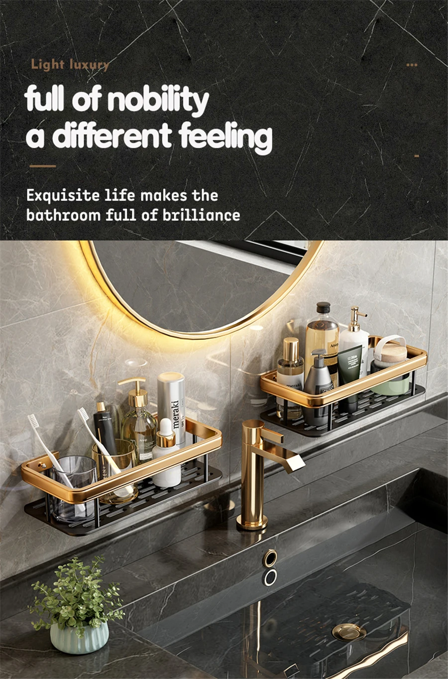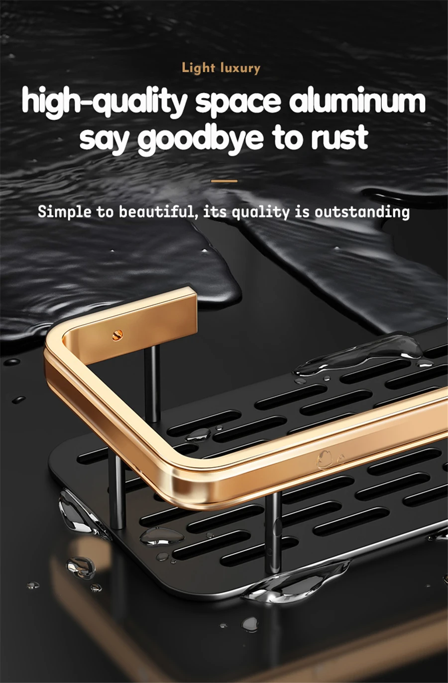 1. Изготовлен из высококачественного алюминиевого материала, стеллажей для ванной комнаты, экономит пространство для ванной комнаты, дизайн слива.