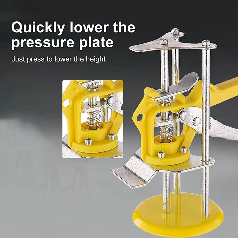 Регулятор высоты плитки: нивелир имеет три сплошных толстых скользящих рельса, стальную опорную пластину, систему выравнивания плитки, изготовленную из высококачественной высокопрочной устойчивой пружины. Свободная регулировка высоты от 1 до 10 см. Инновационный универсальный инструмент, подъем, нажмите, затяните с точностью и контролем.