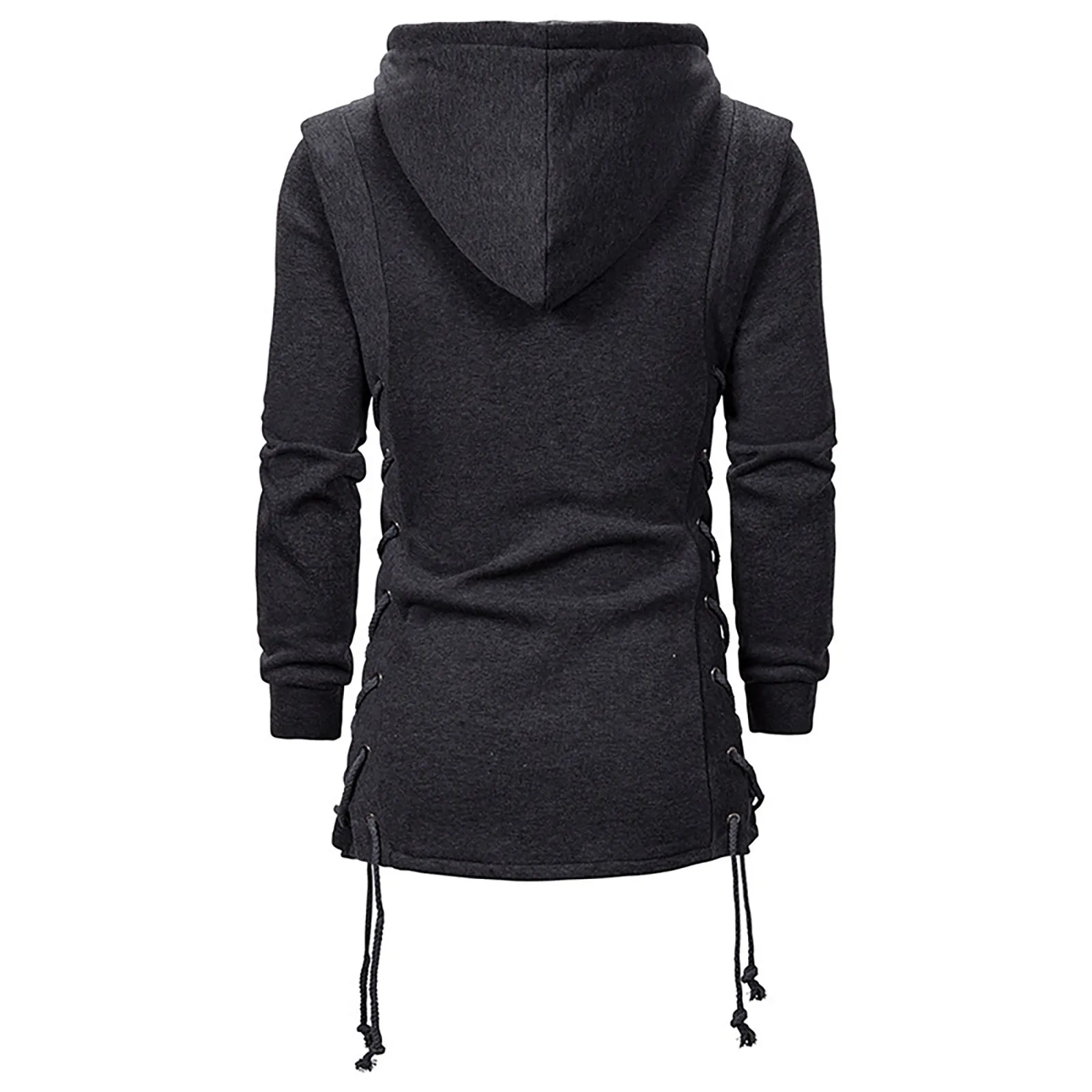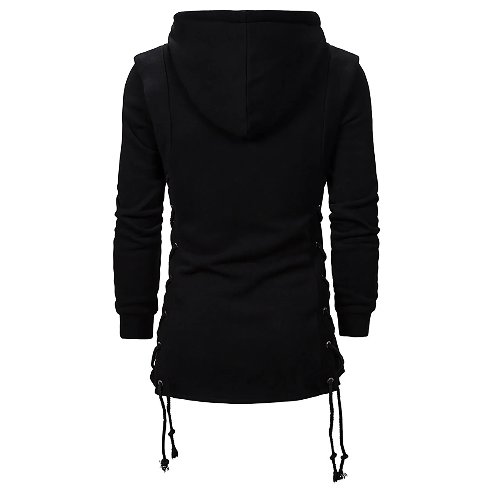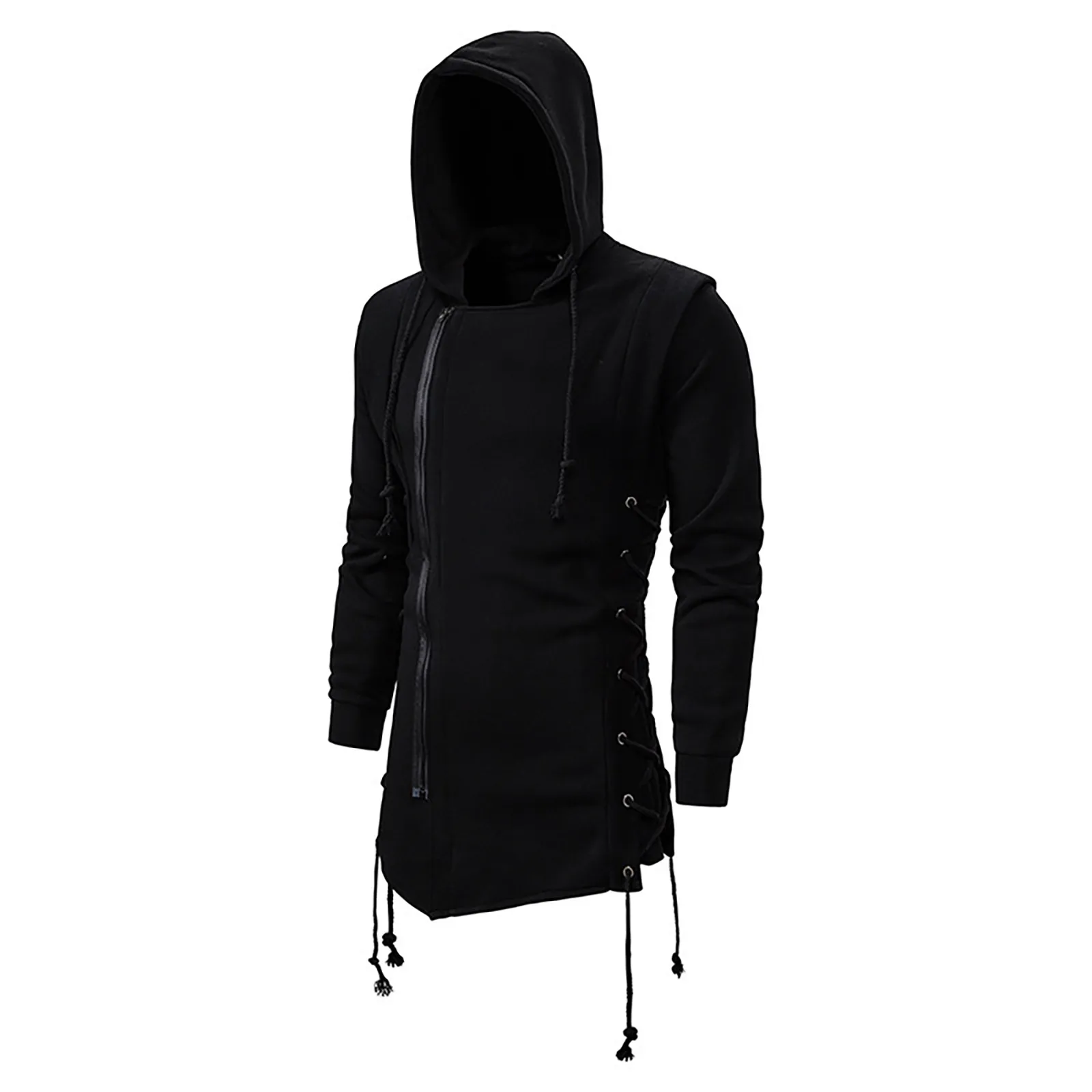 Мужские осенние и зимние трендовые однотонные темно-Длинные свободные пальто с капюшоном в стиле панк