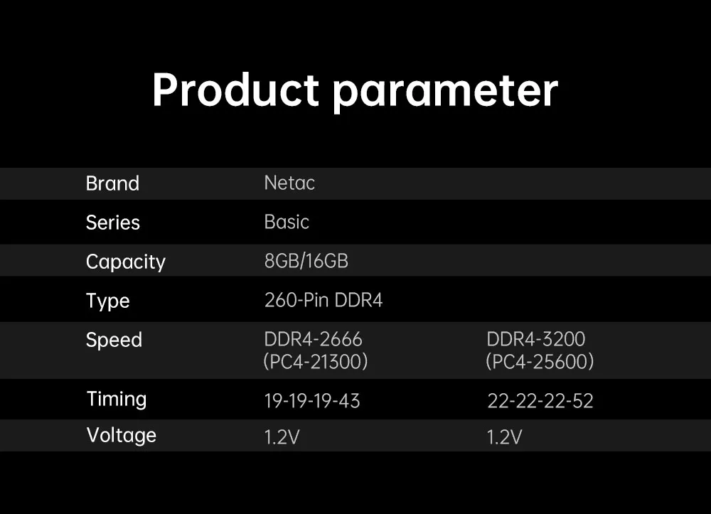 Отзывы о Оперативная память Netac DDR4 4 ГБ 8 16 2666 МГц 3200 ОЗУ SODIMM 260pin 1 2 в JEDEC для ноутбука |