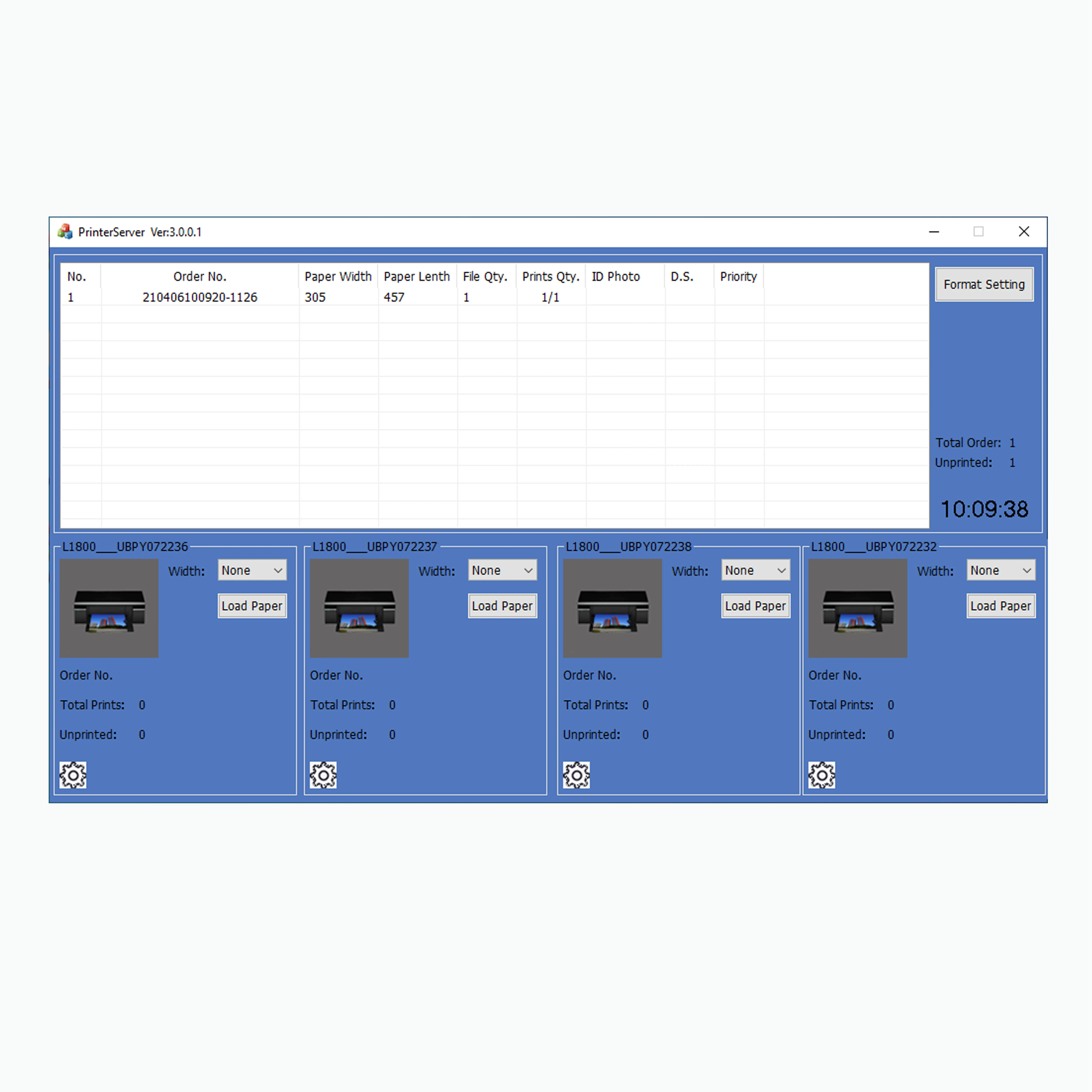 2. ЗРЕЛОЕ программное обеспечение управления-это программное обеспечение minilab styles photo orders, разработанное специально для фотостудий и магазинов. Он может максимально связать и управлять 4 наборами принтеров в системе Интранет. Автоматически присваивайте заказы в соответствии с форматом бумаги, загружаемым на каждый принтер в Интранете, и все принтеры выполняют свои обязанности по печати разных или одинаковой ширины бумаги.