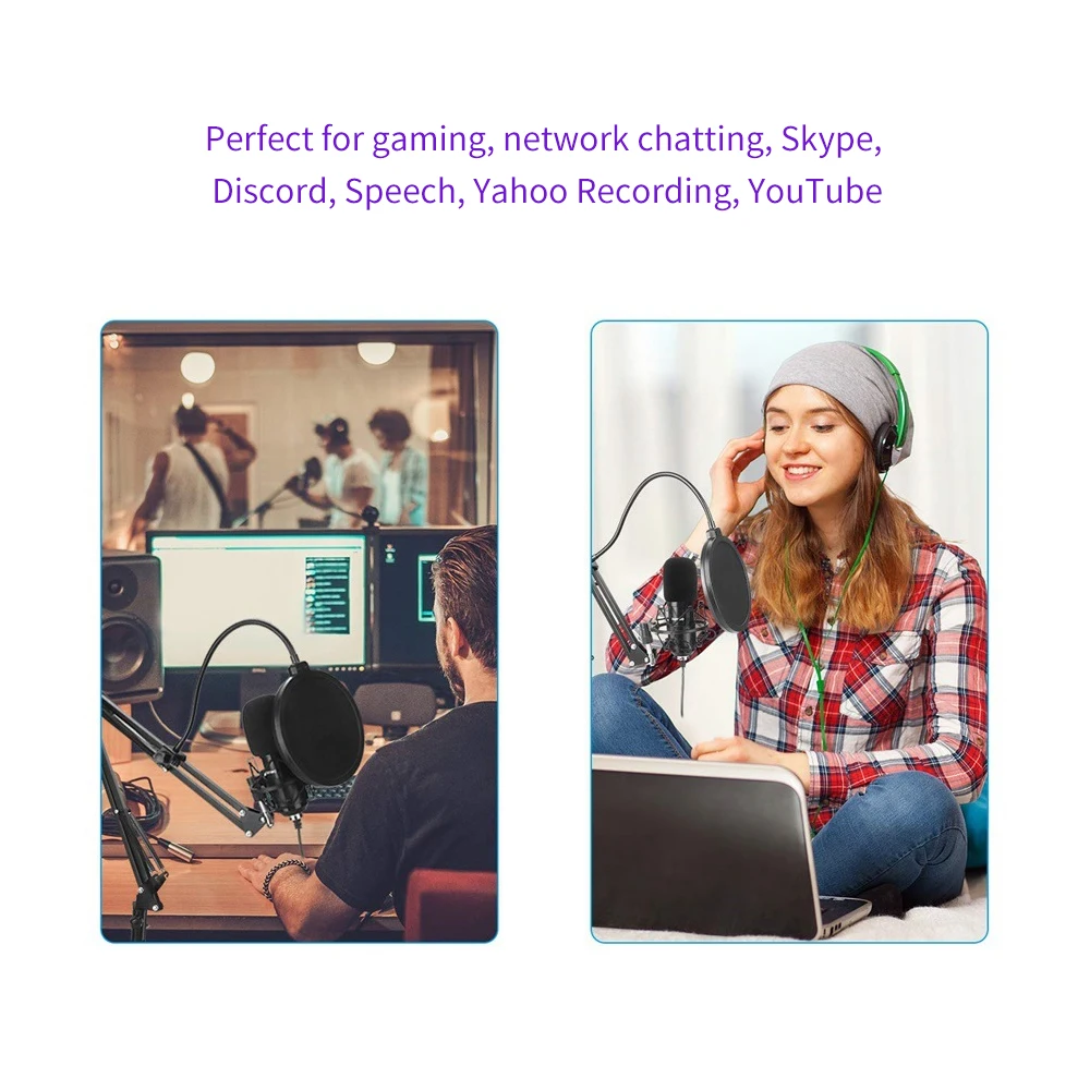 Конденсаторный микрофон разработан с профессиональным чипсетом, чтобы помочь микрофонам USB поддерживать высокую скорость дискретизации, до 192 кГц/24 бит, что обеспечивает вам высококачественный микрофон с четкостью, плавный и плоский звуковой отклик. 16 мм гальванический конденсатор может производить сильные басы.
