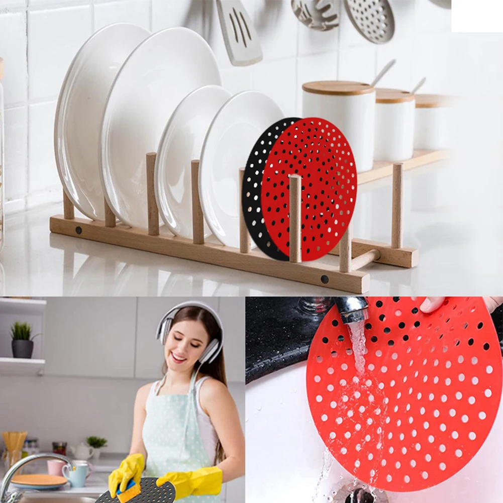 * 2. Воздушная фритюрница Силиконовая накладка является идеальной заменой одноразовой пергаментной бумаги или корзины для воздушной фритюрницы, помогая вам сэкономить больше денег.