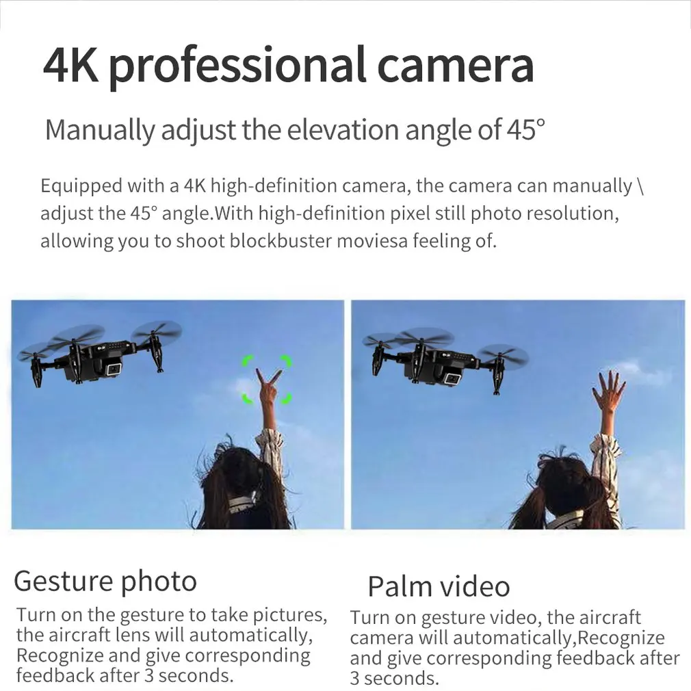Дрон поддерживает 4K фотографии высокой четкости, умное парение, мобильный телефон управления, жестовая фотография, передача изображения высокой четкости, гравитационное определение, траектория полета, взлет и посадка/возврат одной кнопкой.