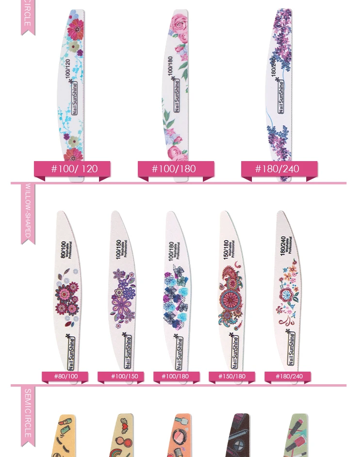 Отзывы о 2 шт./лот двухсторонняя полумесяц пилка для ногтей 80/100/120/180 цветочный дизайн буфер