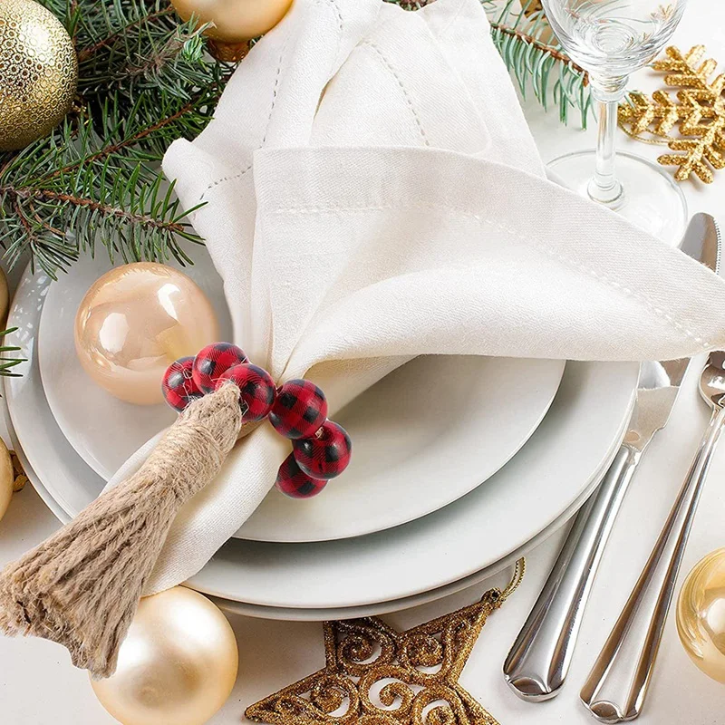 Узор в клетку буйвола: каждое кольцо для салфеток с деревянными бусинами для Хэллоуина натянуто несколькими бусинами на прочной веревке, не легко распускать или сломать, пожалуйста, будьте уверены в использовании, И классический узор в клетку буйвола напечатан на поверхности круглых деревянных бусин, не легко выцветать Или хлопать с течением времени
