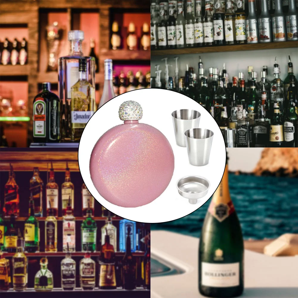 Сталь герметичность ликер хип с двойными стенками из нержавеющей стали с Сияющие Стразы Кепки и воронка и 2