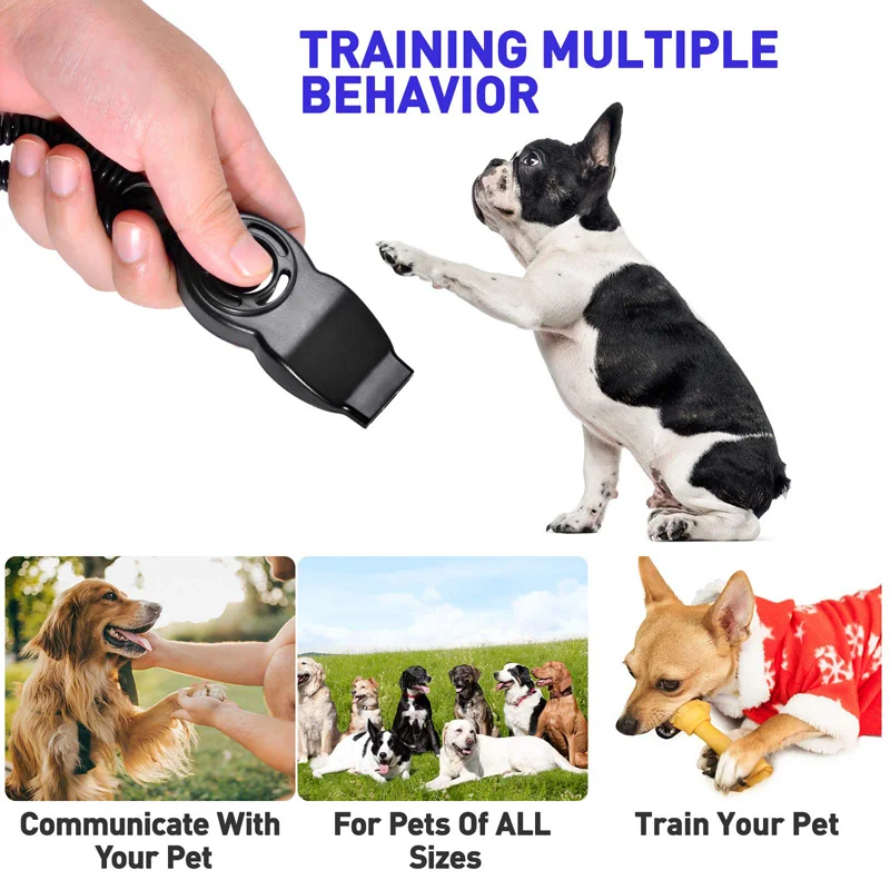 EASY TO USE - Combines two of the most popular dog training tools; a clicker and a whistle, making it an essential training product. Simple push button with distinct clicking sound. Comes with an elastic wrist band so you can leave it on your wrist or clip it to the leash or your pants. Convenient to take outside training. Scientific method of training your pet safely and easily.