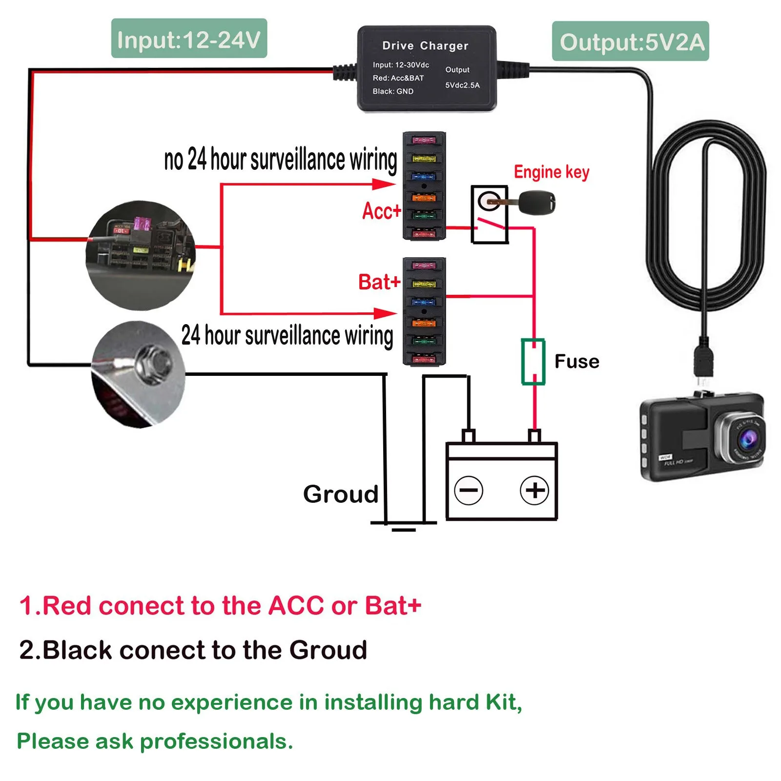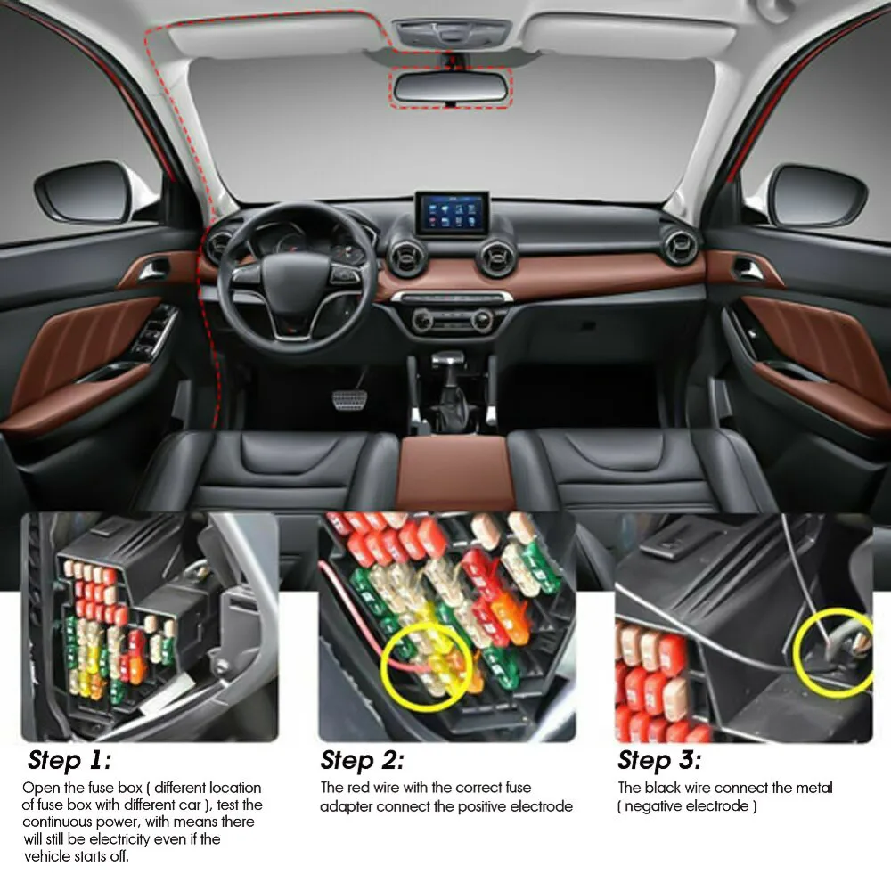 Dash Cam проводной комплект предохранителей для автомобиля DVR рекордер, 24-часовое наблюдение и защищает от Батарея умирает.
