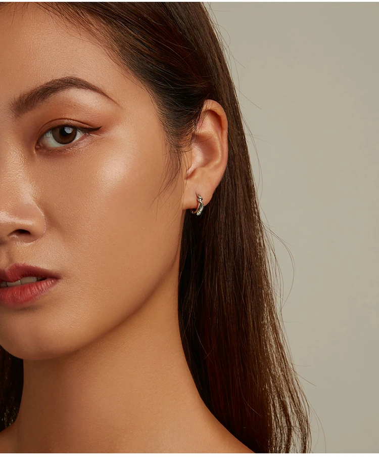 ❤[Описание] изящная маленькая змея обернута вокруг ушной пряжки уникальной формы. Поверхность змеи богата текстурой, а глаза с зеленым цирконием таинственны и винтажны.