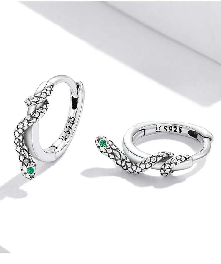 Отзывы о Bamoer 925 пробы серебряные змеиные пряжки для ушей инкрустированные зеленым