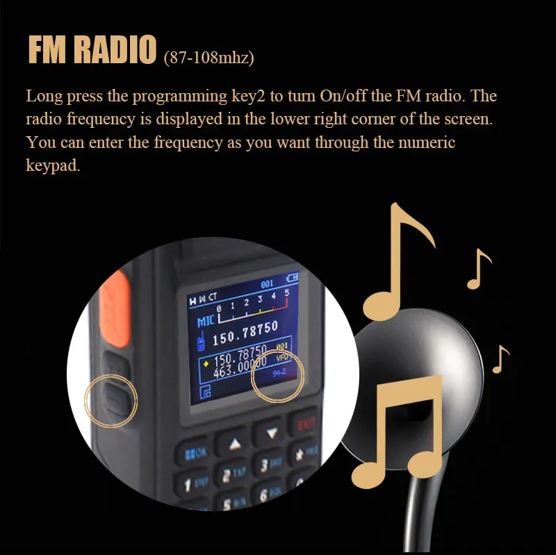 ANYSECU Двухдиапазонная/Двухдиапазонная рация 87-108 МГц fm-радио 10 Вт/1 Вт с функцией счетчика частоты ANYSECU UVF9plus