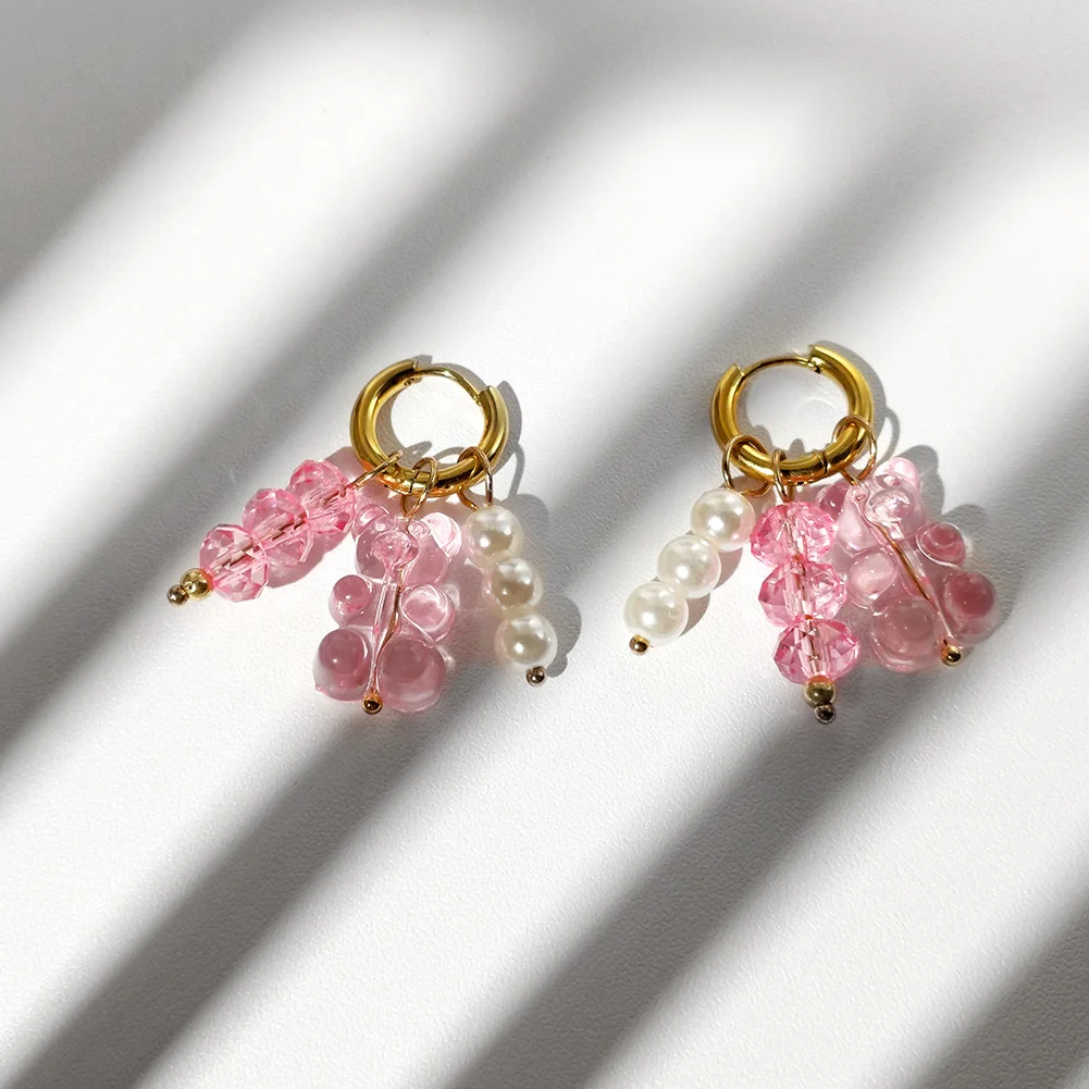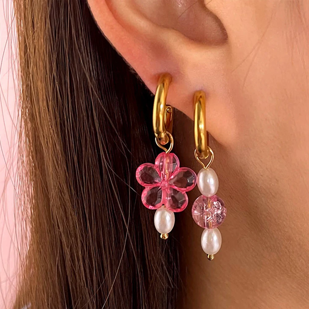 Отзывы о Женские серьги Huggie из розового геометрического бисера яркие ювелирные изделия Y2K