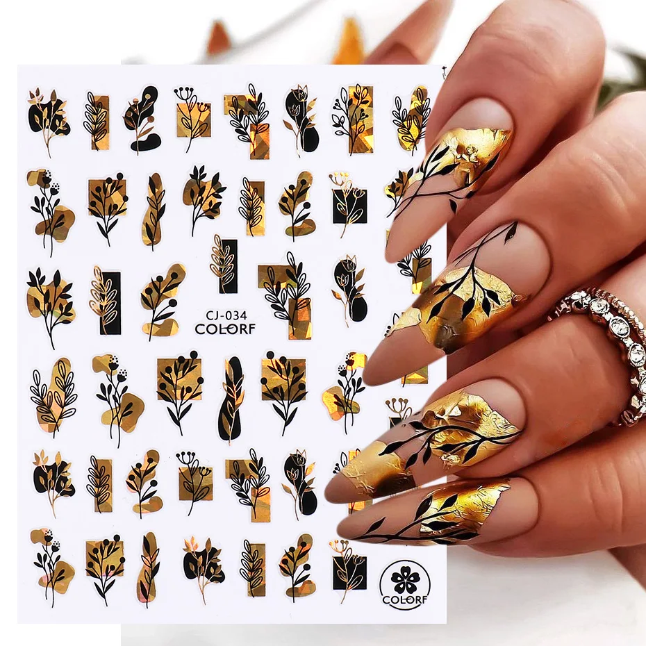 Отзывы о 3D голографические золотые наклейки для ногтей очаровательные цветы лист