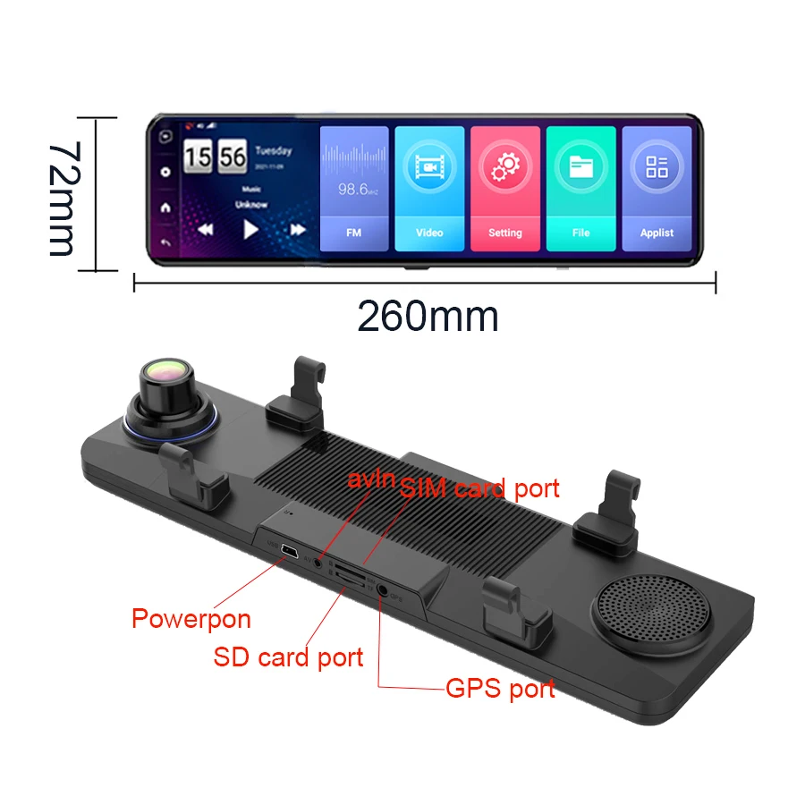 GPS Navigation, Car Video Recorder, Parking monitor, Bluetooth hands-free, WiFi , FM transmitter smartdevice with Android 8.1 OS, ADAS,4G internet surfing, Remote Monitor ,G-sensor.