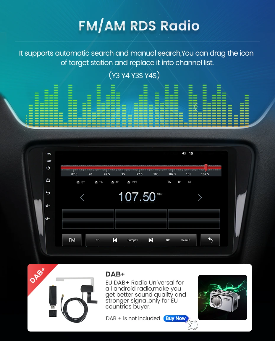 Поддержка 4G Lte, вставьте карту 4G, вы можете смотреть в прямом эфире, слушать музыку онлайн, смотреть фильмы и сделать свой автомобиль легко подключенным к Интернету в любое время(Только для Y3 Y4 есть)