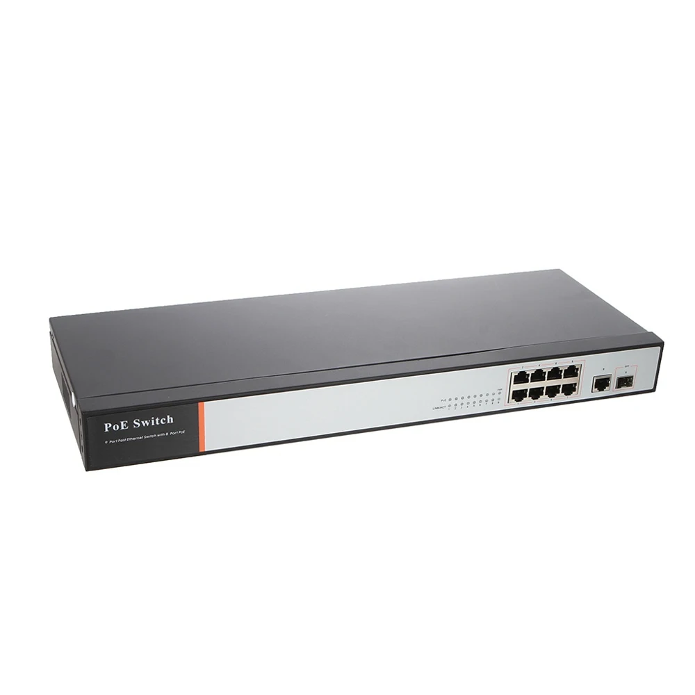 Сетевой порт: 10/100 Мбит/с POE порт (8 портов), 10/100/1000 Мбит/с Uplink (9-й порт), 10/100/1000 Мбит/с SFP (10-й порт)
