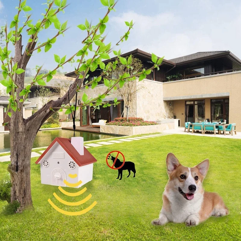 [50-дюймовый эффективный диапазон] наружный контроль коры автоматически включается, когда он обнаруживает лай до 50 футов, а затем издает ультразвуковой звук. Можно повесить на дерево, внутреннюю, наружную стену или столб забора, чтобы остановить лай собак.