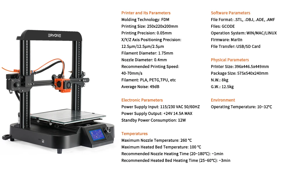 Eryone 3D принтер ER-20, Новое поступление Авто-выравнивания кровать датчик, супер тихий с мощным 32 бит материнская плата бесплатная доставка