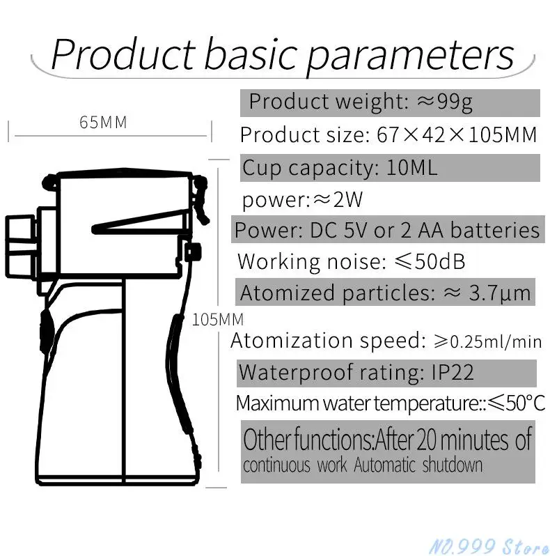 Super Handy&MuteMini size to be handhold (4.5 x 4.5 x 10cm). This pocket size Atomizer is super easy to carry around. Mute work with no noise, 100% baby sleep quiet guarantee.