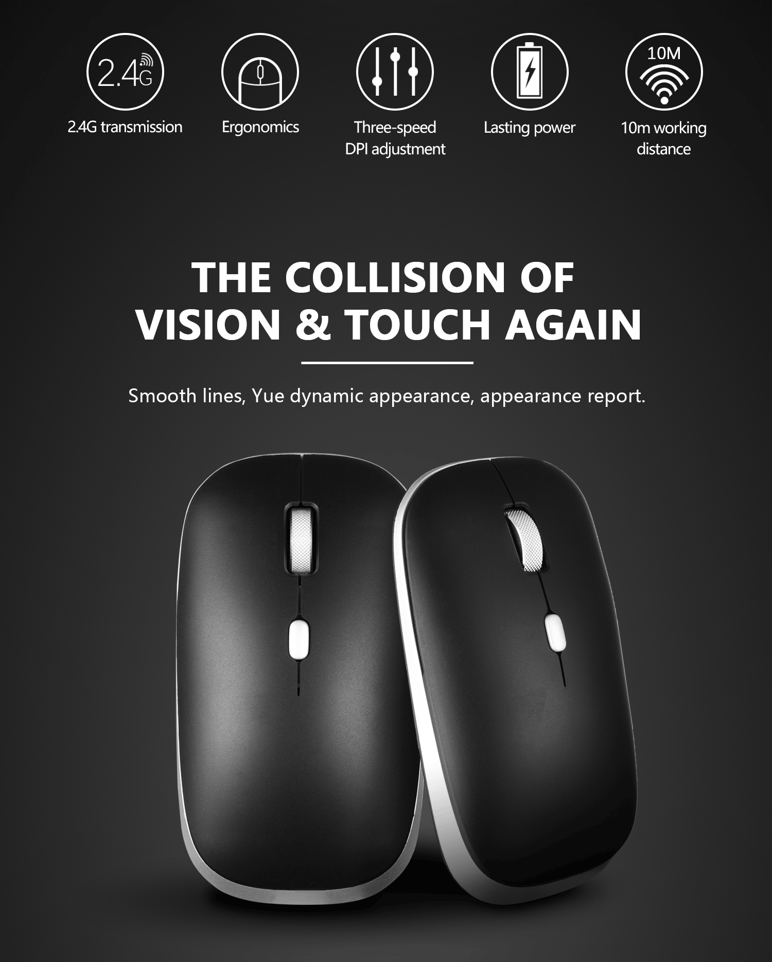 【Максимальное ощущение руки 】Тонкая форма беспроводной мыши, стойкая к поту и приятная для кожи отделка обеспечивают максимальный комфорт и поддержку. Продуманное кольцо и маленький палец обеспечивают дополнительный комфорт. Крепкое колесо прокрутки с резиной гарантирует, что ваша рука не будет скользить при ПРОКРУТКЕ.