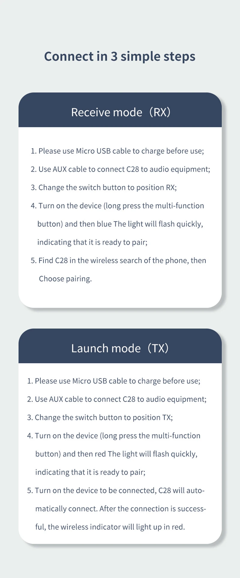 Модель продукта: C28 Bluetooth аудио прием и передача 2 в 1