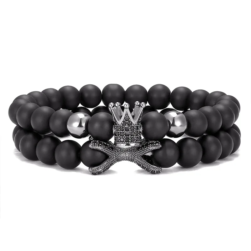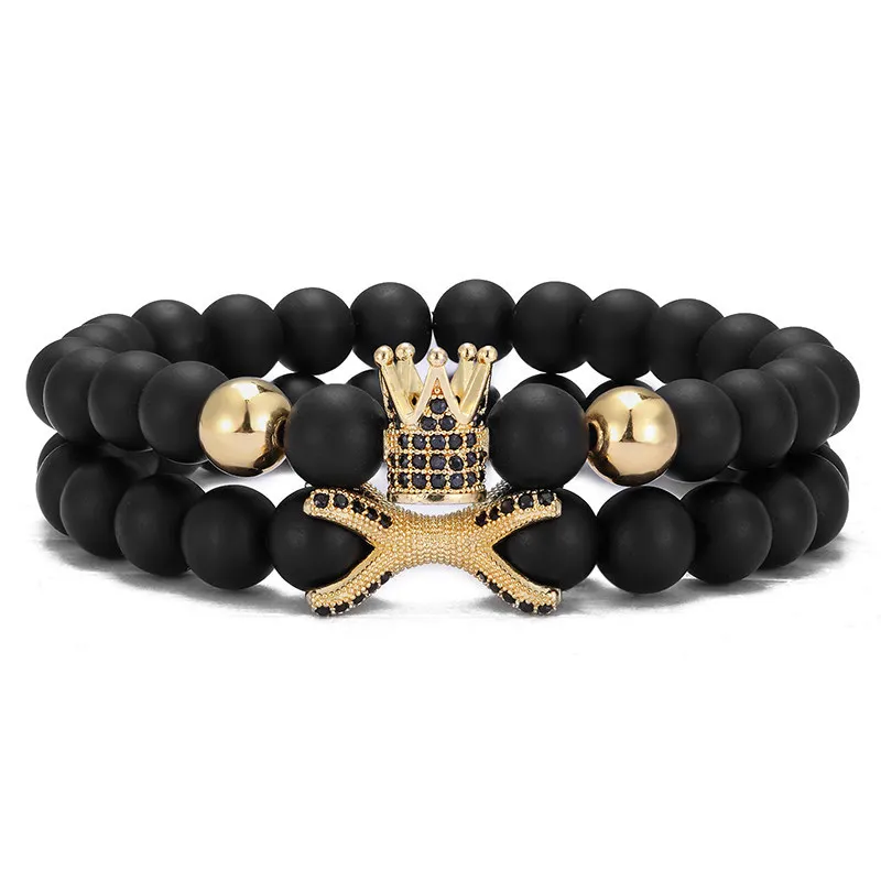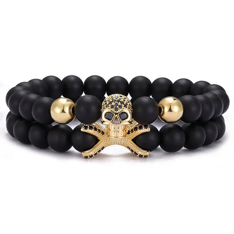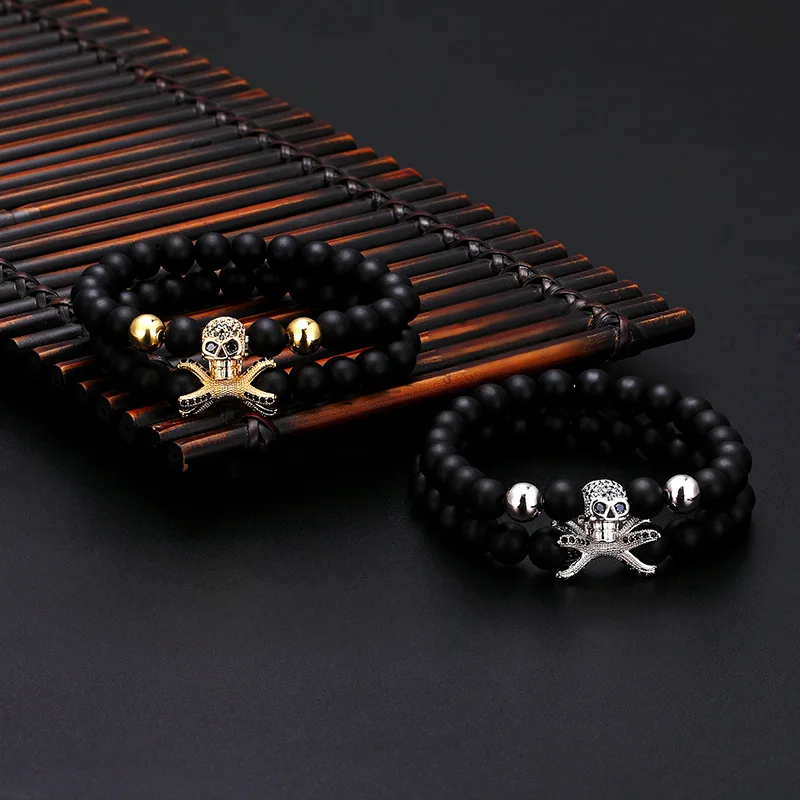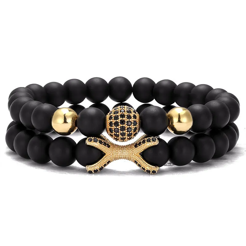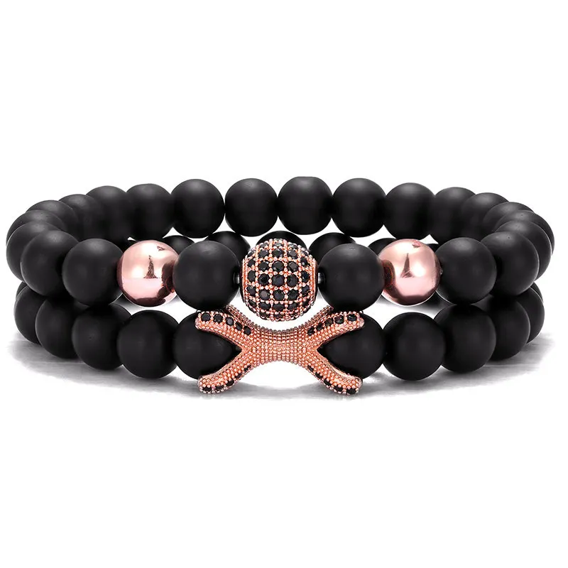 2 шт./набор модный медный микро-инкрустированный Циркон шар + браслет с осьминогом 8 мм натуральный камень бусы браслет мужские ювелирные изделия подарки