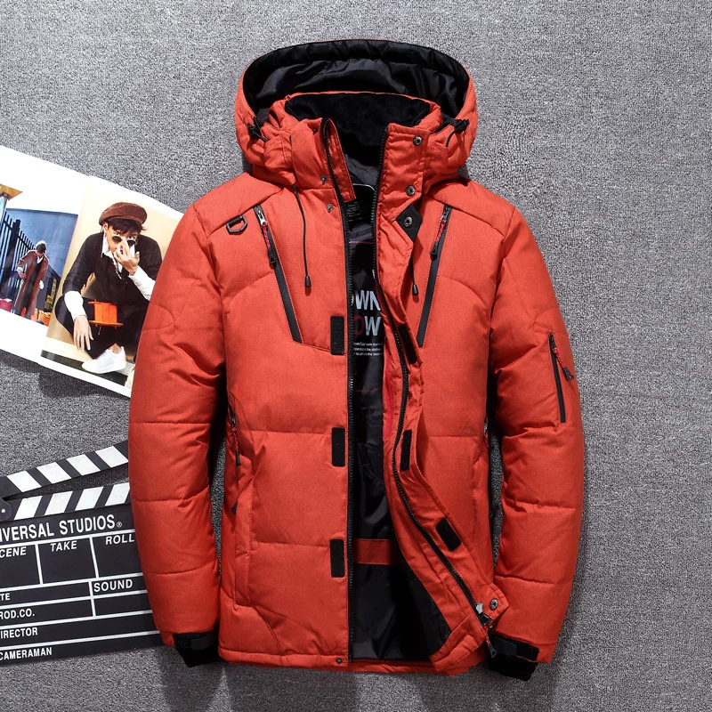 -20 градусов зимняя мужская одежда белая куртка на утином пуху, мужские парки, утолщенная теплая зимняя куртка, пальто, Мужская теплая ветровка, парки