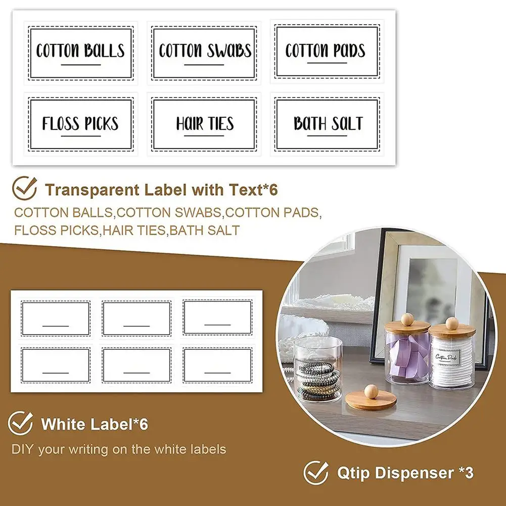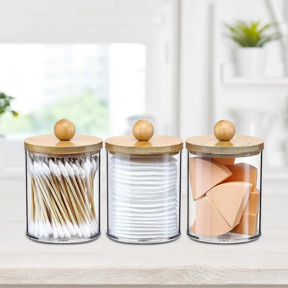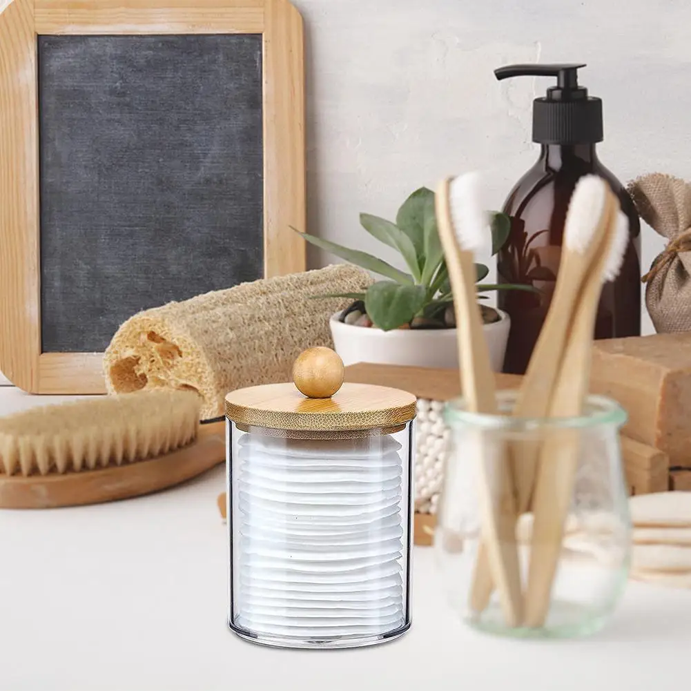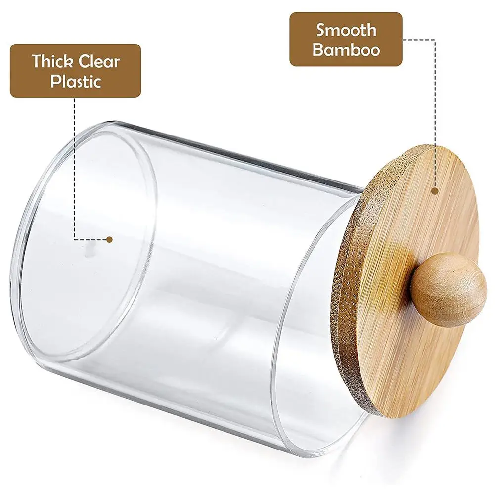 Изготовлен из прочного высококачественного акрилового материала. Прозрачный внешний вид, более устойчивый к падению, чем стеклянные банки, защищает ваши ватные тампоны и хлопковые шарики, сохраняет вещи чистыми и аккуратными, И не займет слишком много места на столешнице или столе в ванной или спальне. Съемная крышка и большое отверстие позволяют легко получить предметы первой необходимости и аксессуары для ванной комнаты. Влагостойкая бамбуковая крышка идеально подходит для акриловых хлопковых тампонов, пыленепроницаемых и водонепроницаемых.