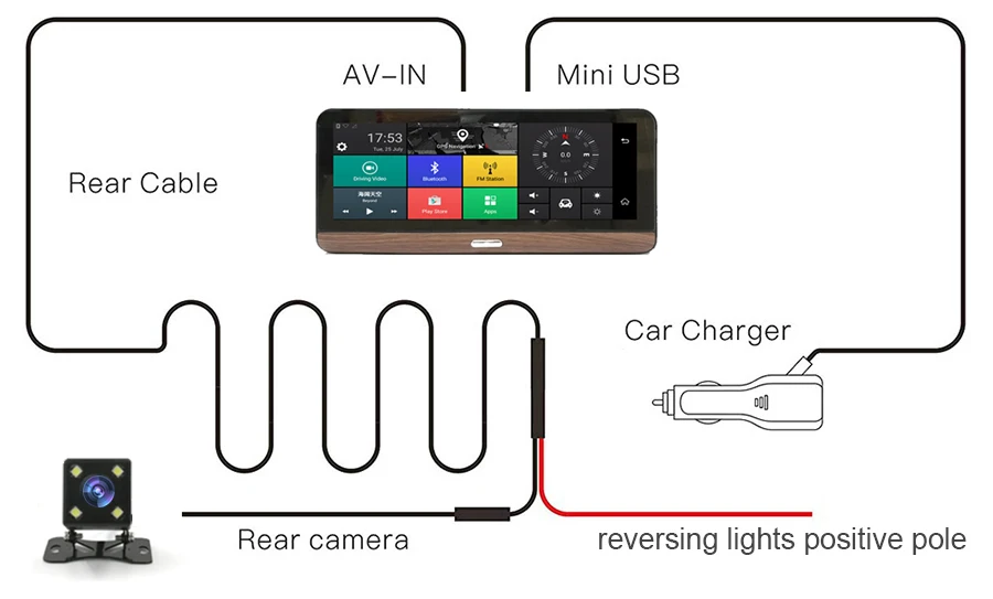 ●Видеорегистратор должен подключать автомобильный аккумулятор для поддержки этого удаленного монитора, пожалуйста, используйте понижающую линию для мощной мощности, когда автомобиль не запускается.