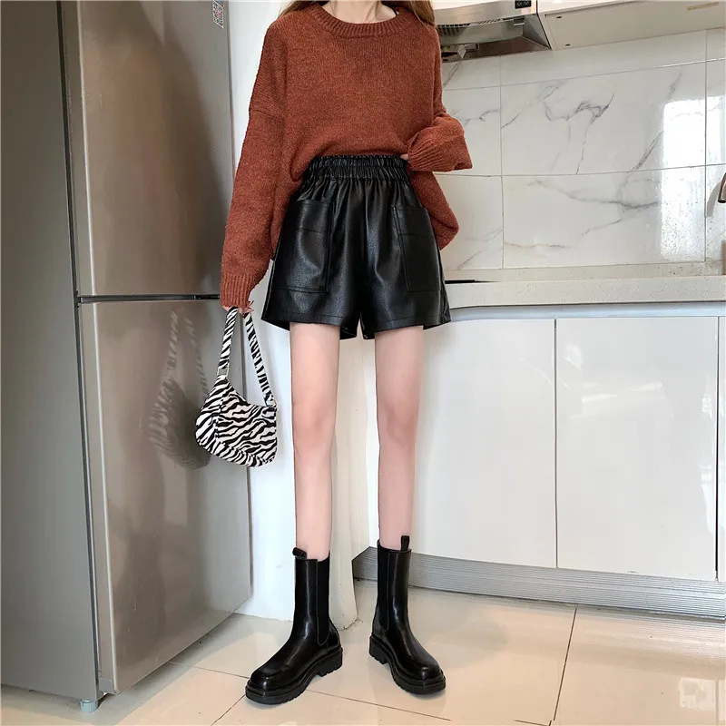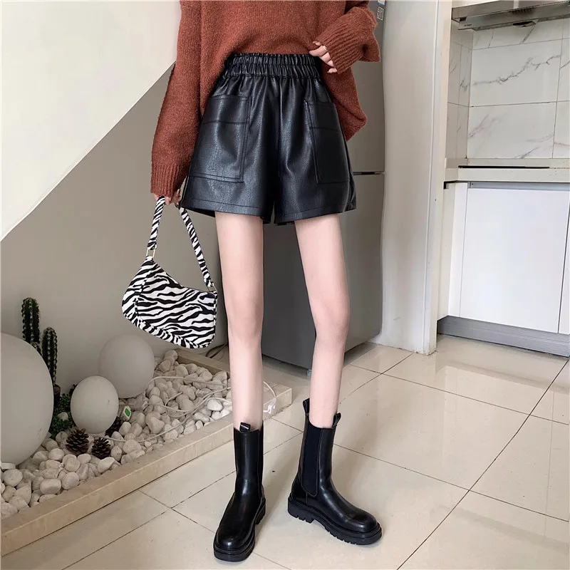 Отзывы о Черные женские шорты из искусственной кожи с высокой талией и карманами | Женская