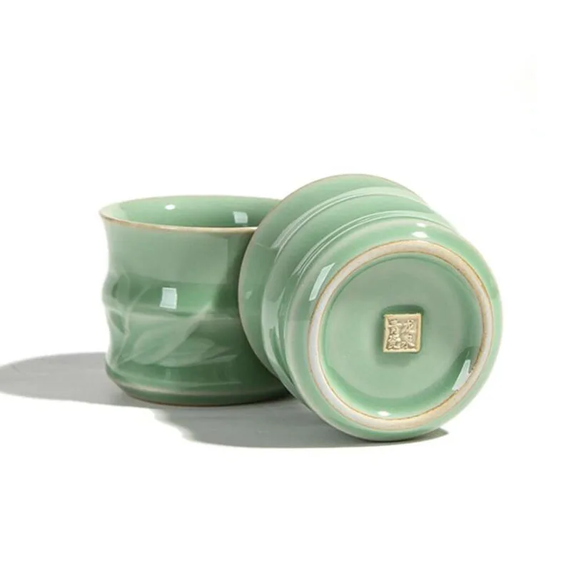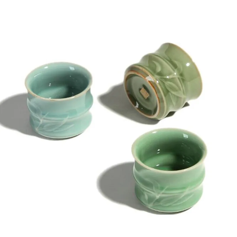 Отзывы о 2 шт./компл. чайная чашка ручной работы из селадона с бамбуковым узором кунгфу