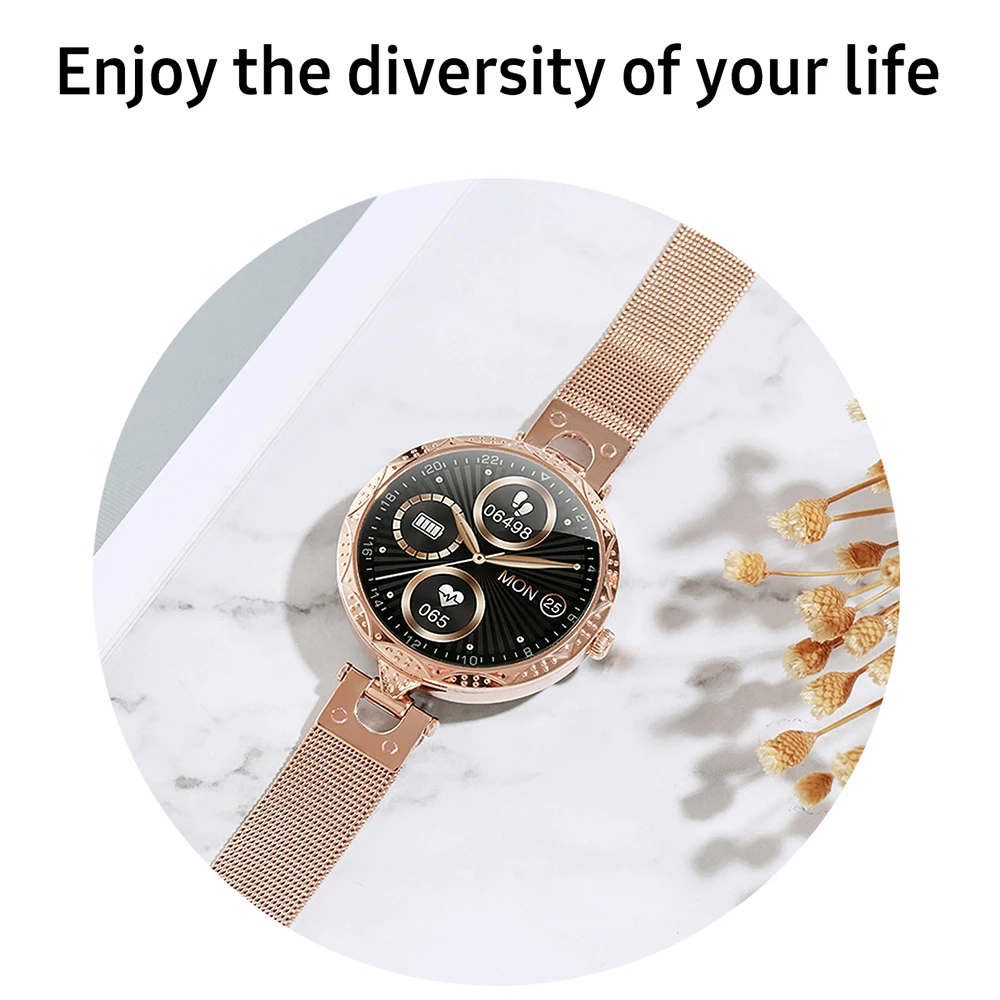 Новые женские Смарт-часы AK22 с полным сенсорным круглым экраном, умные часы для девушек, монитор сердечного ритма, Совместимость с Android и IOS