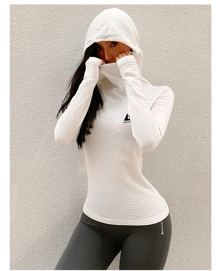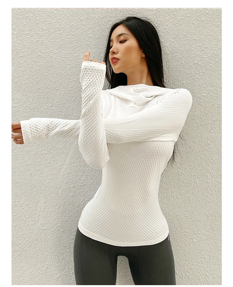 Отзывы о Бесшовная Спортивная рубашка с капюшоном женский топ для фитнеса куртка бега