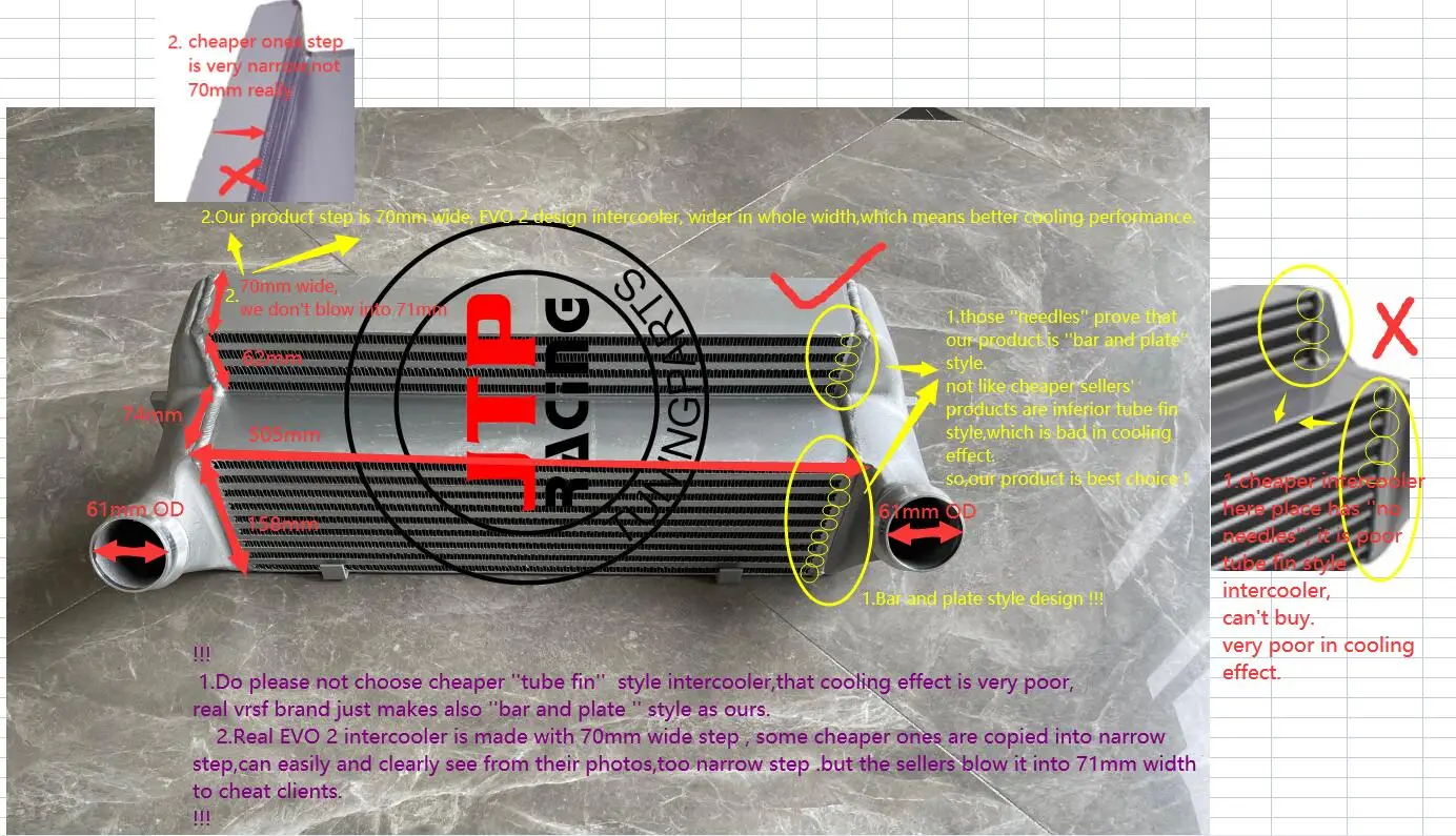 Ступенчатый интеркулер EVO 2 F20 F21 F22 F30 F31 F32 F33 F34 N20 N55 теплообменник двигателя M135i/M235i/335i/435i/125i/220i/228i/320i/328i/420i/428i/F87(Бар и тип пластины) 25 л.с. +,70 мм широкий шаг.1. ! Из-за того, что большинство клиентов предпочитают серебряные, потому что серебряные имеют более тонкую краску на внешней поверхности, что делает охлаждающий эффект лучше. Не похоже на черные, которые изготовлены из толстого порошкового покрытия, что блокирует рассеивание тепла. Теперь мы продаем только серебряные!2. ! То, что вы получите, это стиль панели. Версия Evo 2, больший размер, чем evo 1. Лучший охлаждающий эффект.!3.! Только профессиональный покупатель может сказать разницу между лучшим качеством версии "бар пластины" и нижней версии "трубный Плавник"