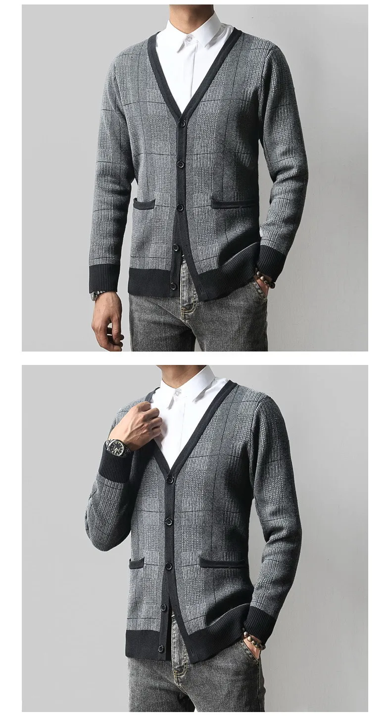Отзывы о Мужской трикотажный кардиган с V-образным вырезом и длинным рукавом |